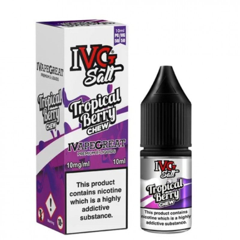 The IVG Tropical Berry Nic Salt is a spearmint with a berry and chewing gum flavour nic salt e-liquid. Salt based nicotine captures the natural salts..